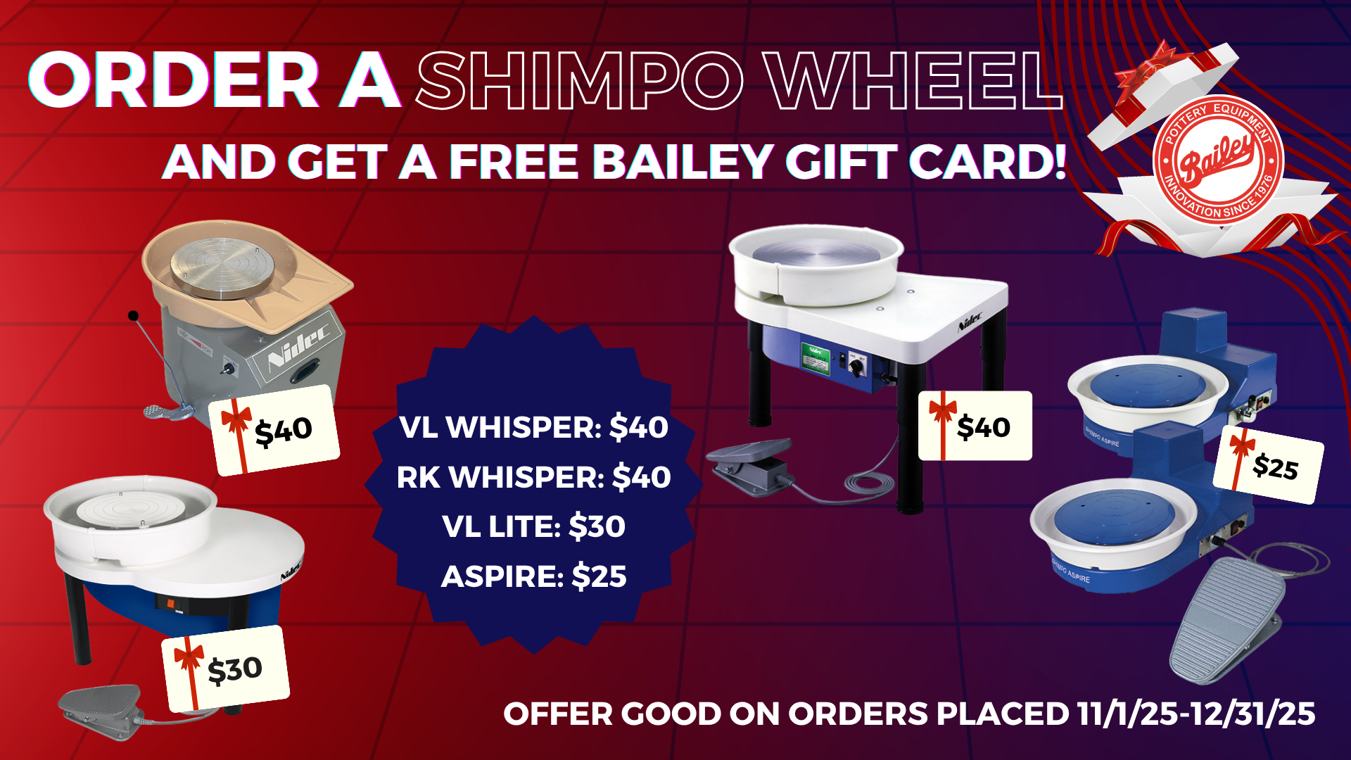 Founded in 1976, Bailey Pottery Equipment and Ceramic Supply offers everything for the active pottery studio and ceramics department. We design and manufacture the most innovative pottery wheels, slab rollers, clay extruders, electric kilns, gas kilns, pugmills and clay mixers in the world. Bailey’s reputation for high quality equipment is well known. In addition, we represent the best brands of pottery tools, equipment and supplies in the industry- all at great discounts. You will appreciate our fast, reliable service and expert sales staff. We guarantee that you will be satisfied with your purchase. You can order online anytime or call us toll free at (800) 431-6067 to have all your questions answered by our professional sales staff.